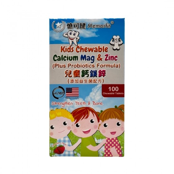 憶可健兒童鈣鎂鋅營養咀嚼片由美國著名cGMP製造商Vitamins For Life製造,品質保證。