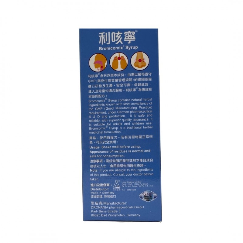 舒緩呼吸道不暢;舒緩鼻敏;痰多、喉嚨痕癢;不含人造色素。