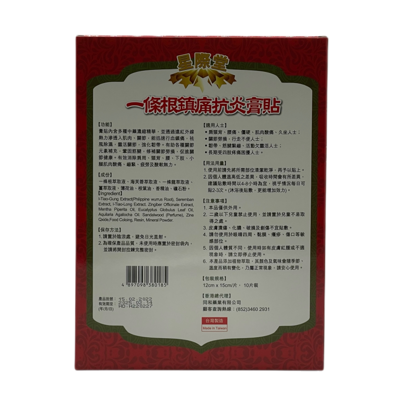 星際堂一條根鎮痛抗炎膏貼10片裝